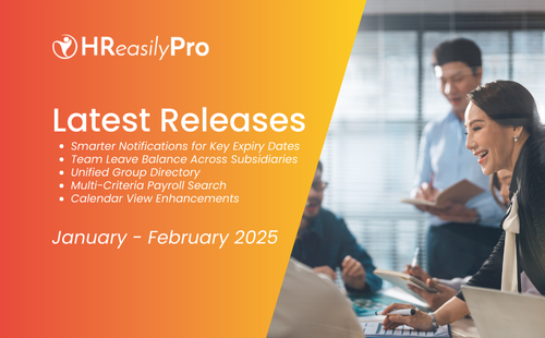HReasilyPro enhances existing features to deliver greater visibility and efficiency across HR and payroll workflows. Improvements include smarter notifications for key expiry dates, cross-subsidiary visibility for leave data and reporting lines, refined multi-criteria payroll search, and an upgraded Calendar View. These enhancements are now live across all regions, supporting more responsive and informed workforce management.